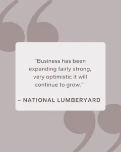- “Product demand has been strong hopefully will continue.” – Multi-regional Lumberyard